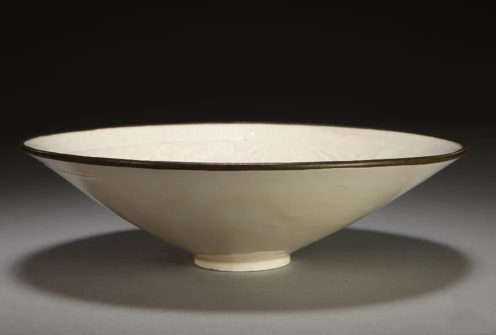 ▼北宋 定窑白釉印花缠枝海石榴纹笠式碗 故宫博物院藏