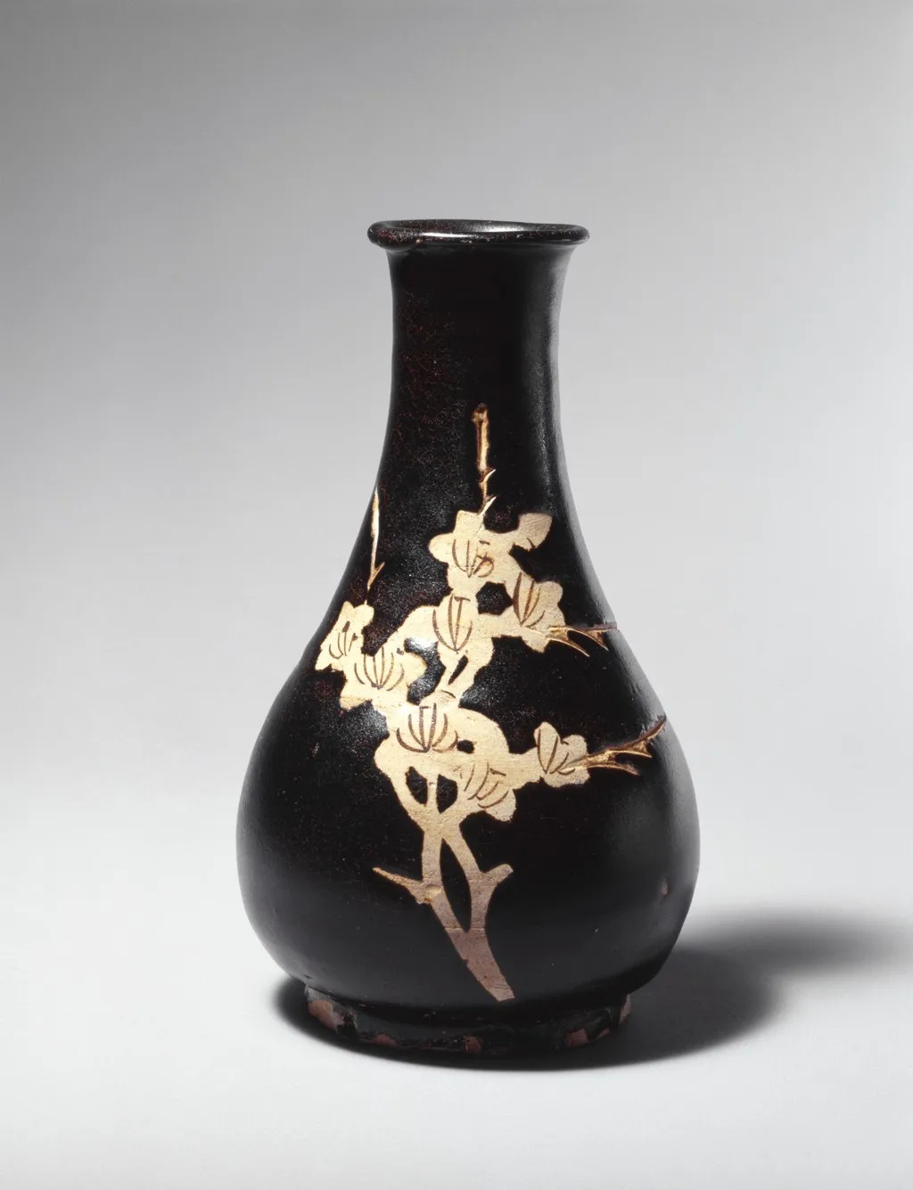 ▼南宋 吉州窑黑釉剔花折枝瓶 美国哈佛大学塞克勒博物馆藏