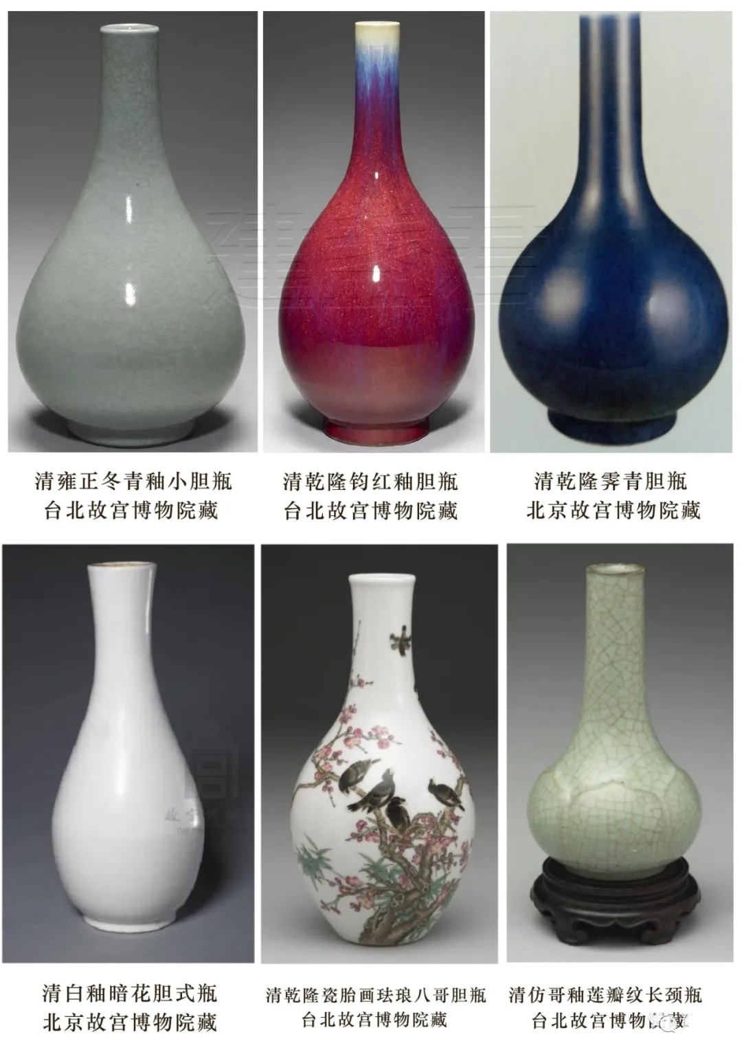 宋代流行各种款式的胆式瓶,至清代胆式瓶样式多为直口式。