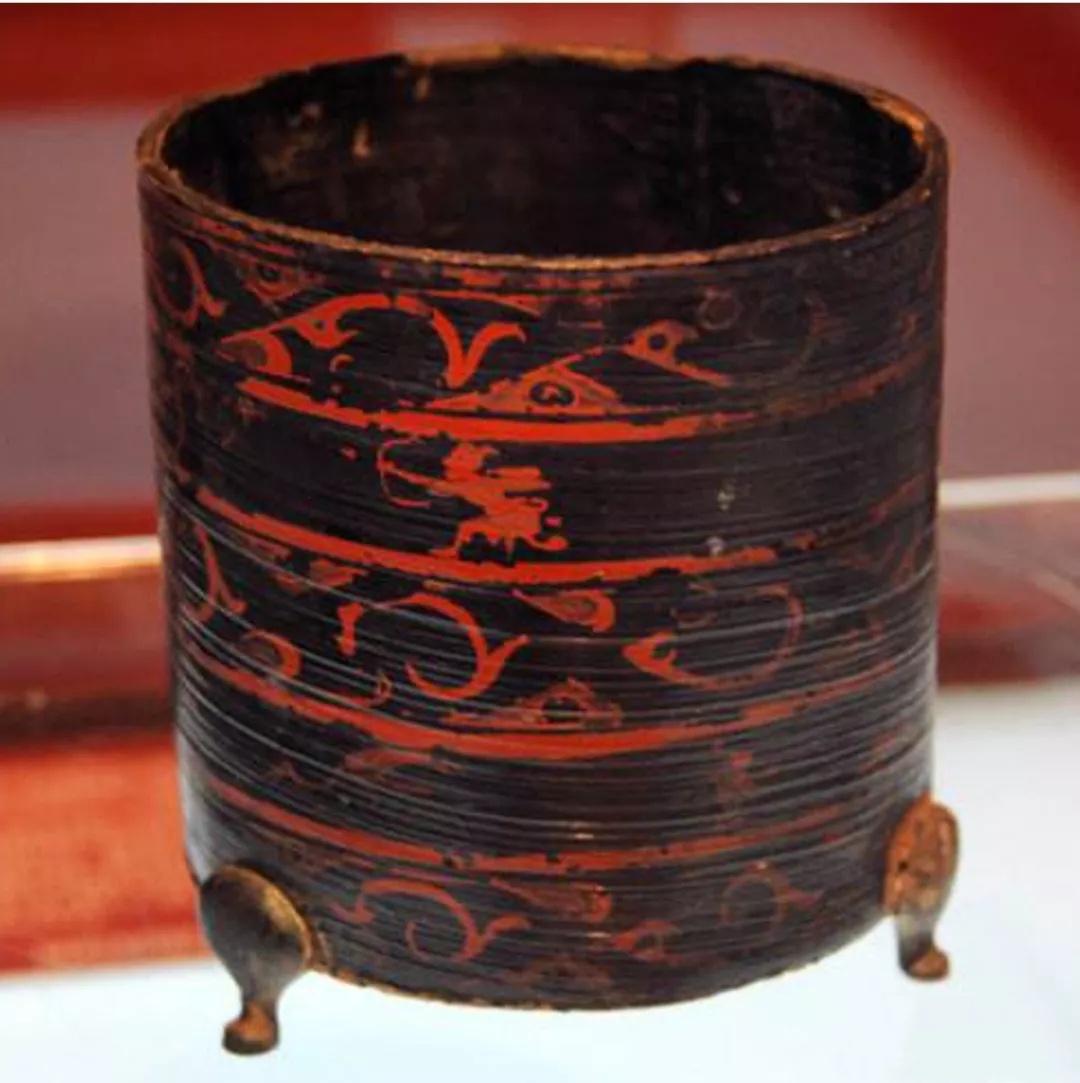 图11-1 西汉彩绘铺首衔环三蹄足漆奁,扬州博物馆藏