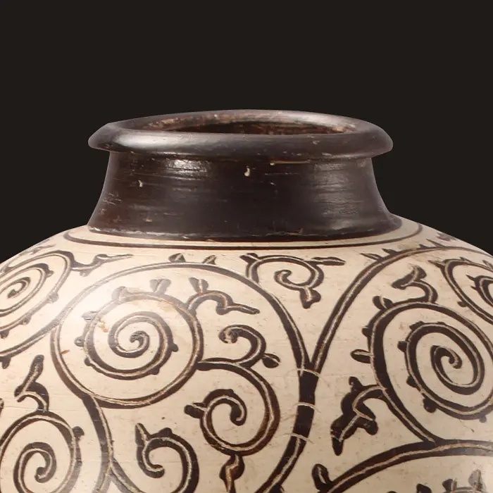 名称:宋 吉州窑褐彩卷草纹瓷瓶 尺寸:高35.2,口径8.3,底径12.3(单位:厘)
