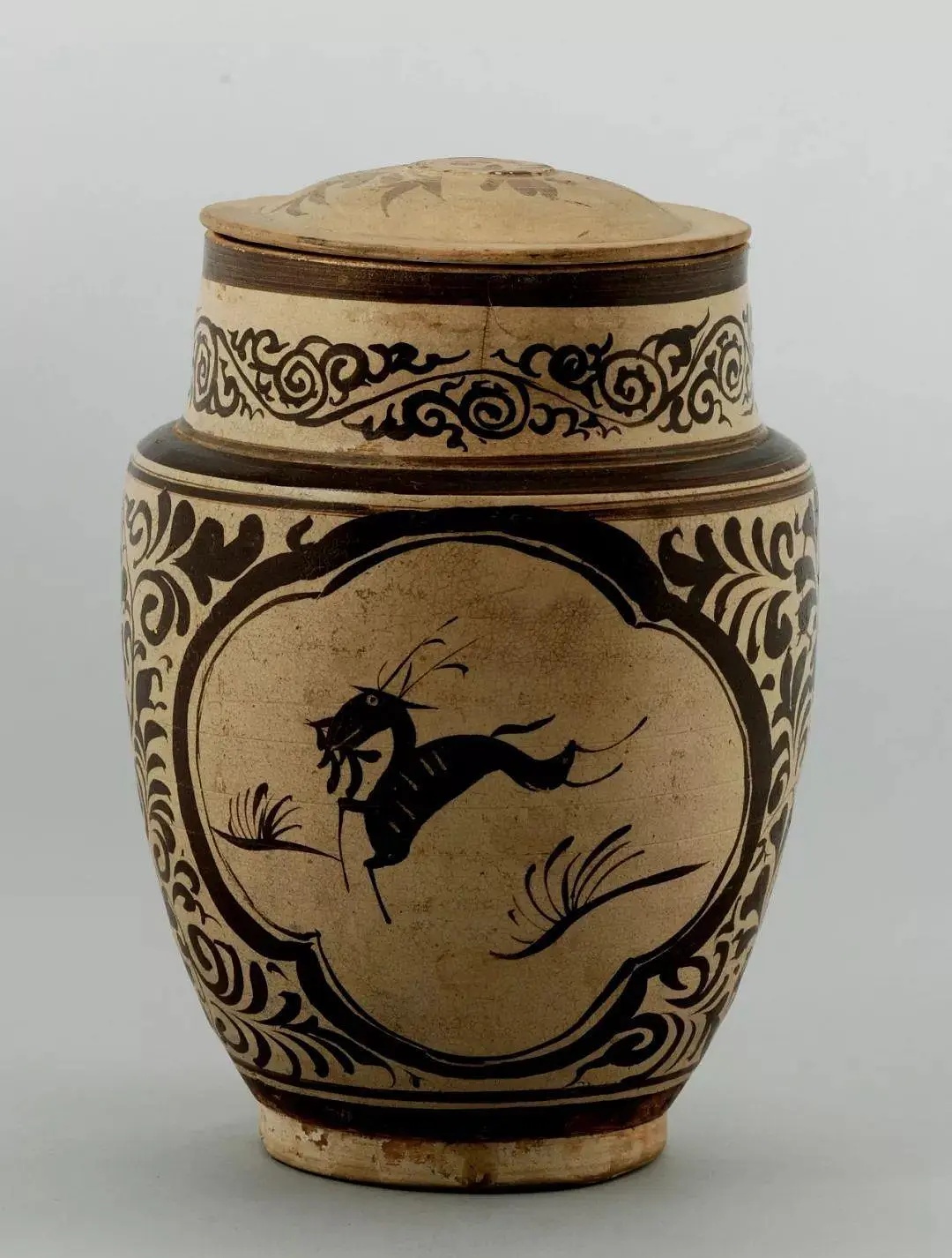 △釉下彩绘跃鹿纹罐(颈部为蔓草纹)(多说一句:这个审美,简直“小鹿乱撞&rdquo