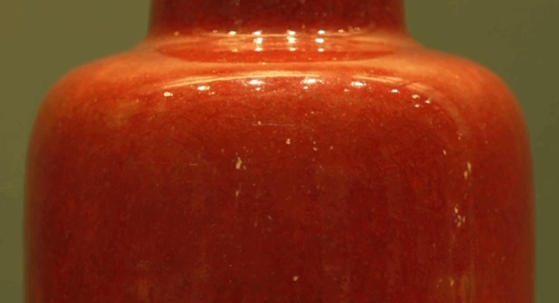 △ 郎窑红釉琵琶尊,具有很明显的脱口垂足特征。故宫博物院藏。