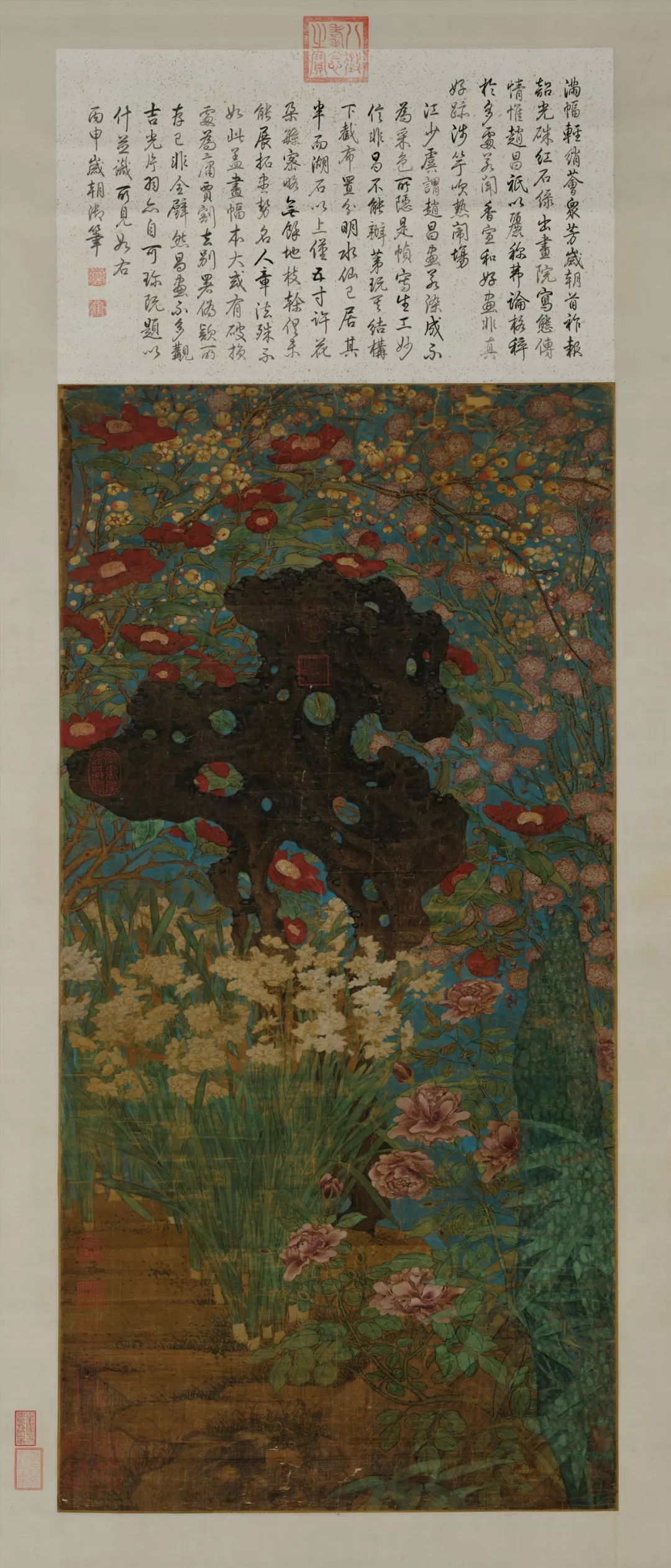▲[明代]李士達《花村稱慶圖》(又名《高堂稱慶圖》),紙本設色, 127.5×86cm。私人藏品。