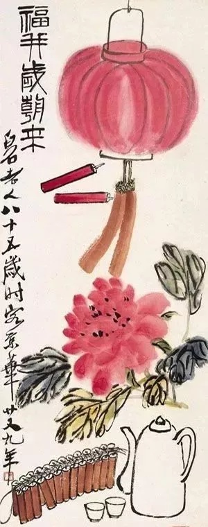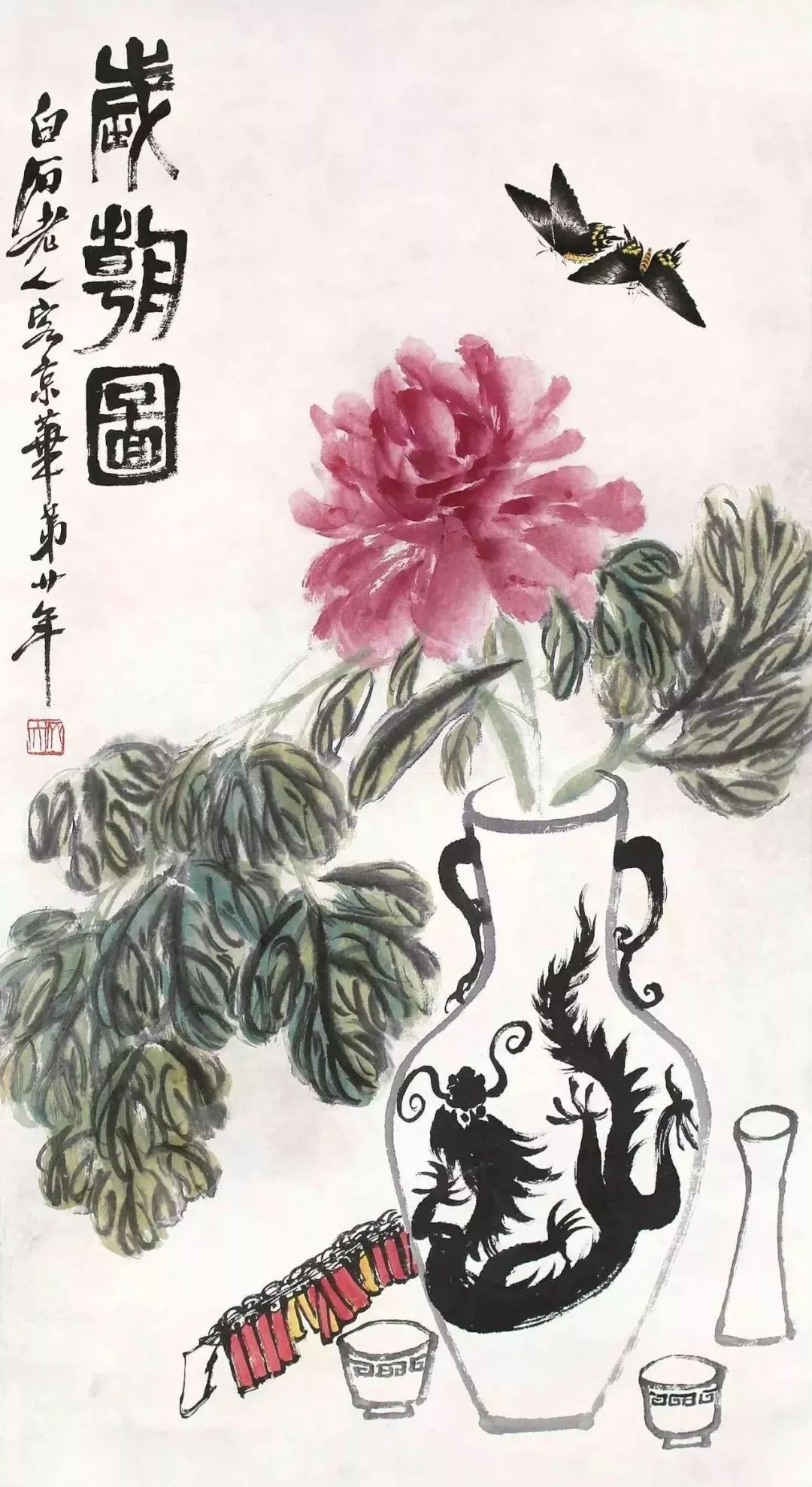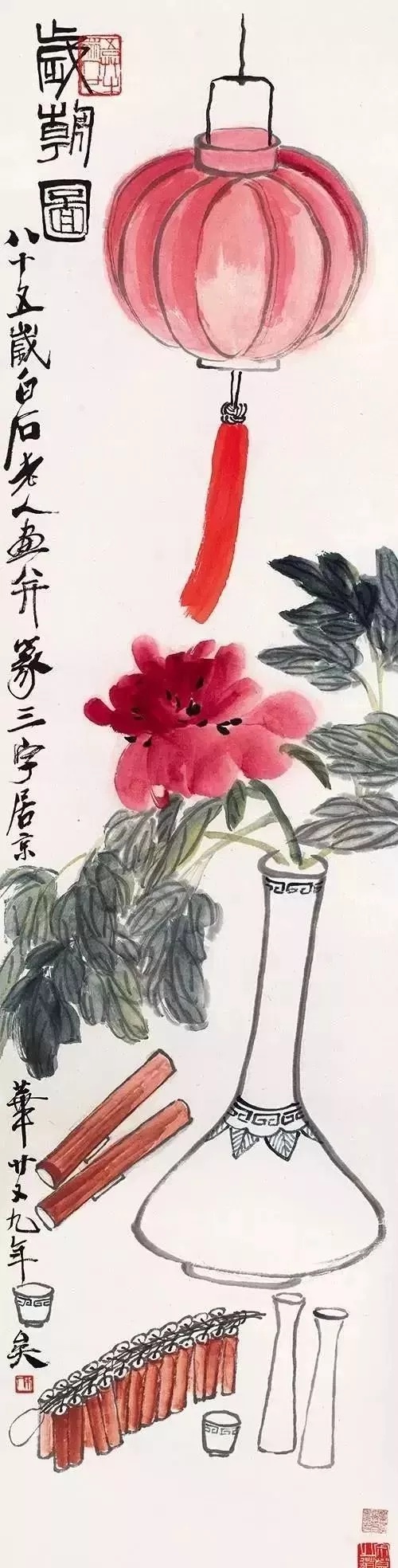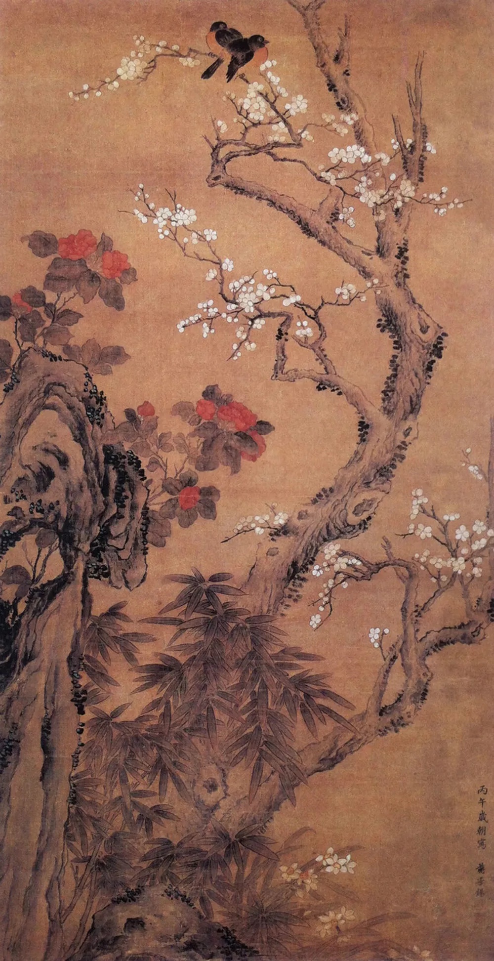 ▲[清代]劉壽萱《歲朝圖》,絹本設色,105×58cm。私人藏品。