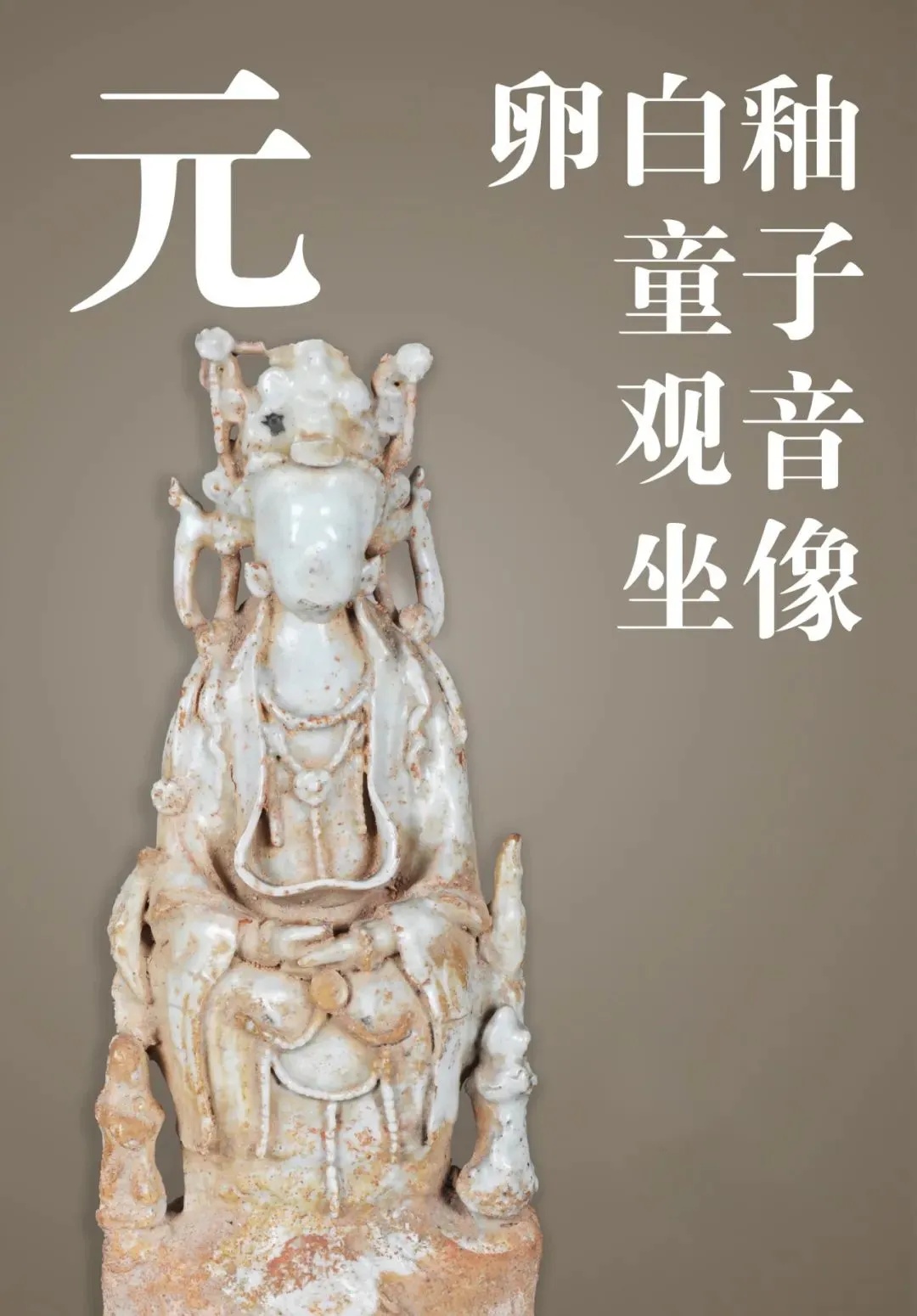 元卵白釉童子观音坐像