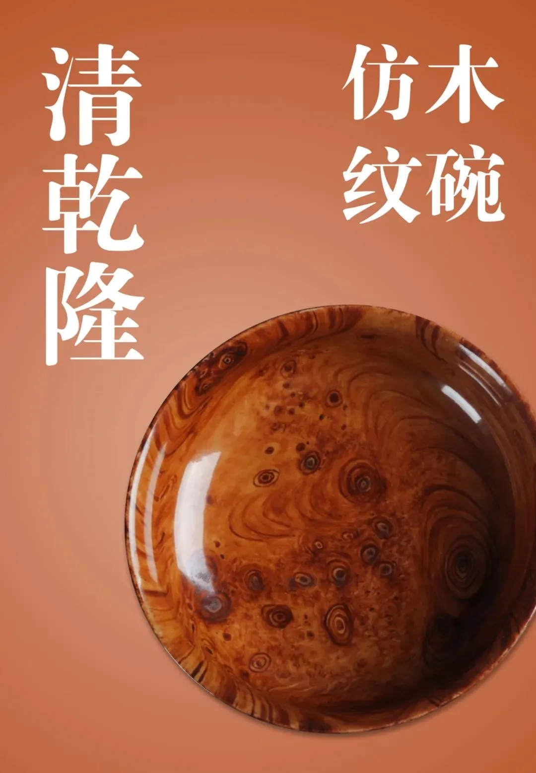 此碗仿木纹纹理清晰,釉面质感逼真。仿生瓷指的是仿造现实生活中的生物、器物等烧制的瓷器。其中,仿花果或动物形象的瓷器,又称象生瓷。