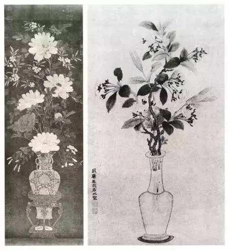 ③ 中国瓶花出现于公元3世纪末期的西晋,在河北省平泉出土的北魏太和十三年(489年)铭(刻)的阿行造观音立像石刻,准确纪年的瓶花供养再次出现,公元500年之后,在北方的北朝中晚期,在南方的南朝晚期达到高潮,形成了各种形式的瓶花供养方式。北方地区集中在洛阳、大同、河西、陇西,南方在南京。南北朝晚期到隋代在南北方都出现了相应的花瓶实物。在这些以石刻为主的中国瓶花早期图像中,瓶花供养和瓶花专赏的原始形式都可以找到根源。瓶花供养是中国历史上持续的供养系统,早期佛前供养和成对瓶花供养的方式成为五代、北宋室内堂前供养的先声,乃至成为北宋三供、元代五供的源头;早期菩萨手执瓶花的姿态成为隋代以后观音的特有造型。早期的菩萨身畔瓶花的图像成为北宋以后水月观音像、杨柳观音像和高士图中瓶花的雅致范式,北宋专赏瓶花由此形成,并引发了之后宋元明清专赏花瓶的泛滥。