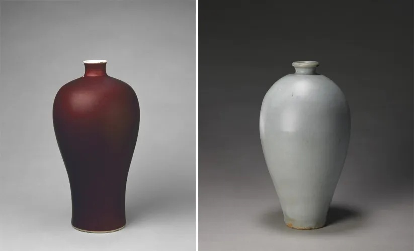 左图:霁红釉梅瓶/右图:钧窑月白釉梅瓶