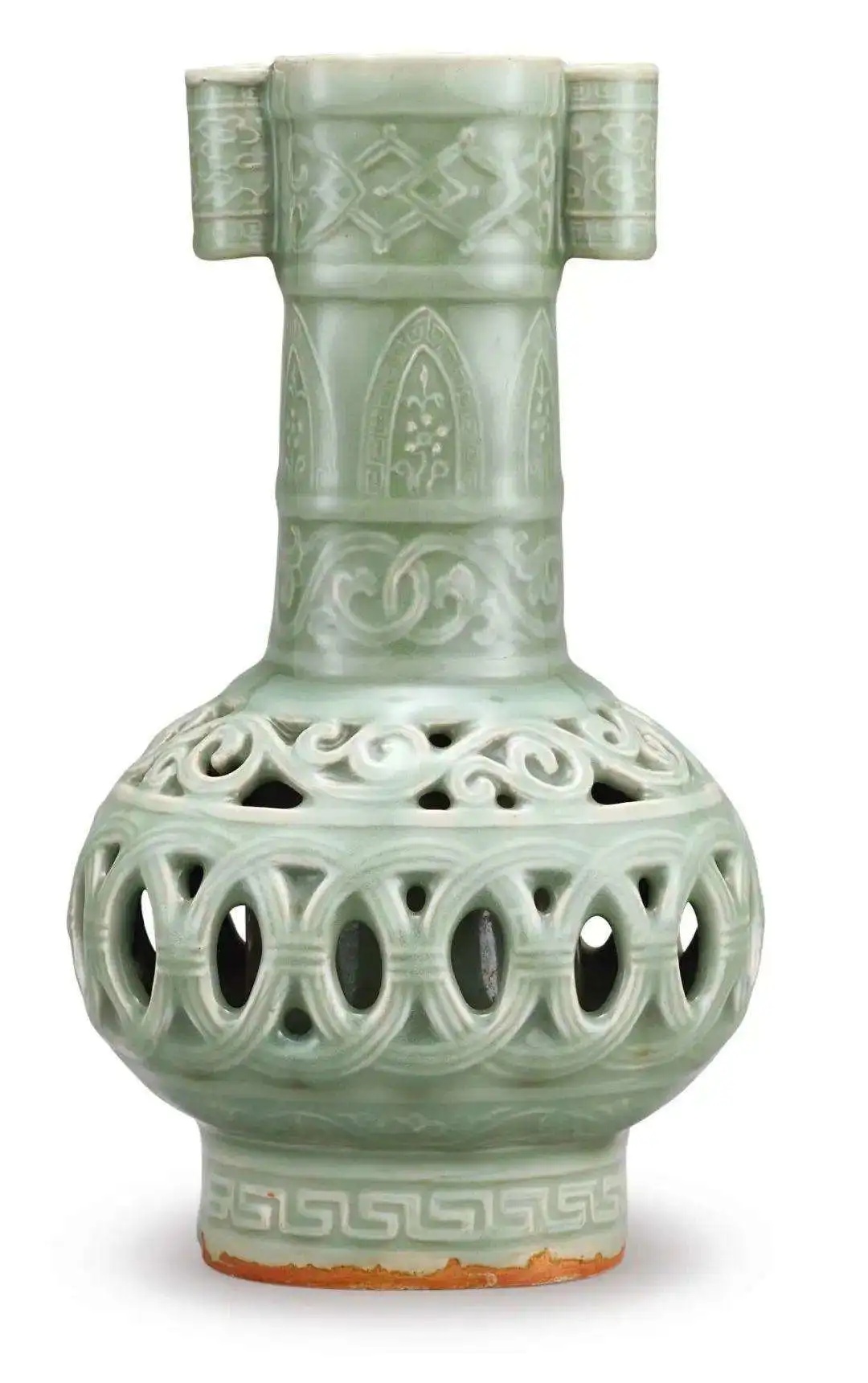 元至明 龙泉青釉镂空投壶