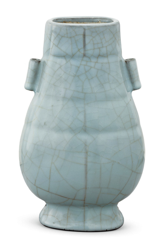 官窑青釉贯耳瓷瓶