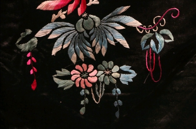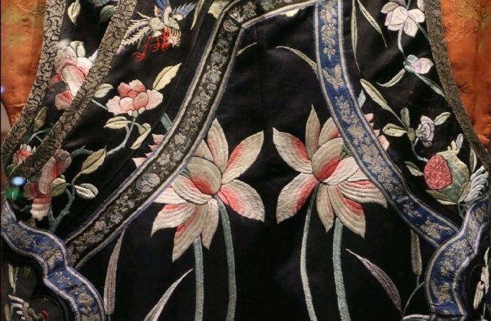 云锦中的花卉纹样,以“缠枝莲”和“缠枝牡丹”较多,也有将两者画在一起的。现在还能看到零星的当年江宁织造的挑花图纸,艺人称作“汉府稿”。云锦艺人所要记取的已非一般的方法,因此,在他们的口诀中,只强调了两点:一是花头要大(“莲头粗如云头”),二是花梗要细(“莲梗细如绳曲”)。且看那些枝梗的处理,粗的用叶遮盖,细的“恰如明月晕”,这样就突出了硕大的花朵。至于“莲藤形如老苍龙”,那断断续续的枝节,不是苍老,而是厚重,说明云锦艺人的艺术境界,可谓“大匠若拙”了。