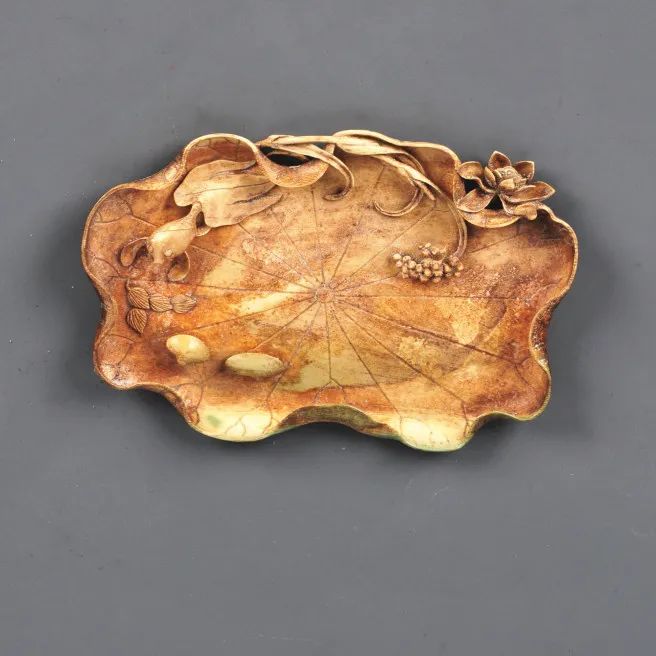 清 象牙雕荷叶形盘