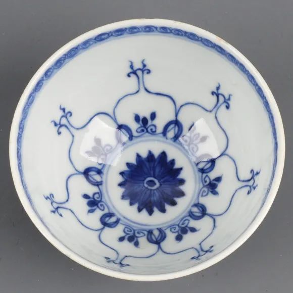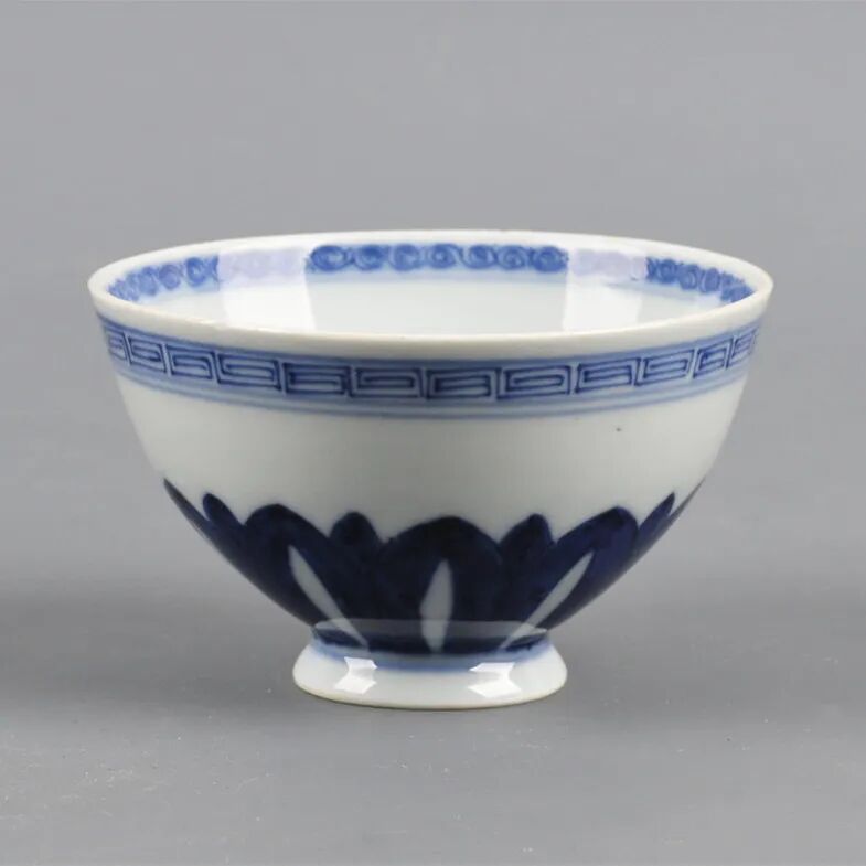 清雍正 仿成化款青花莲瓣纹鸡心底碗