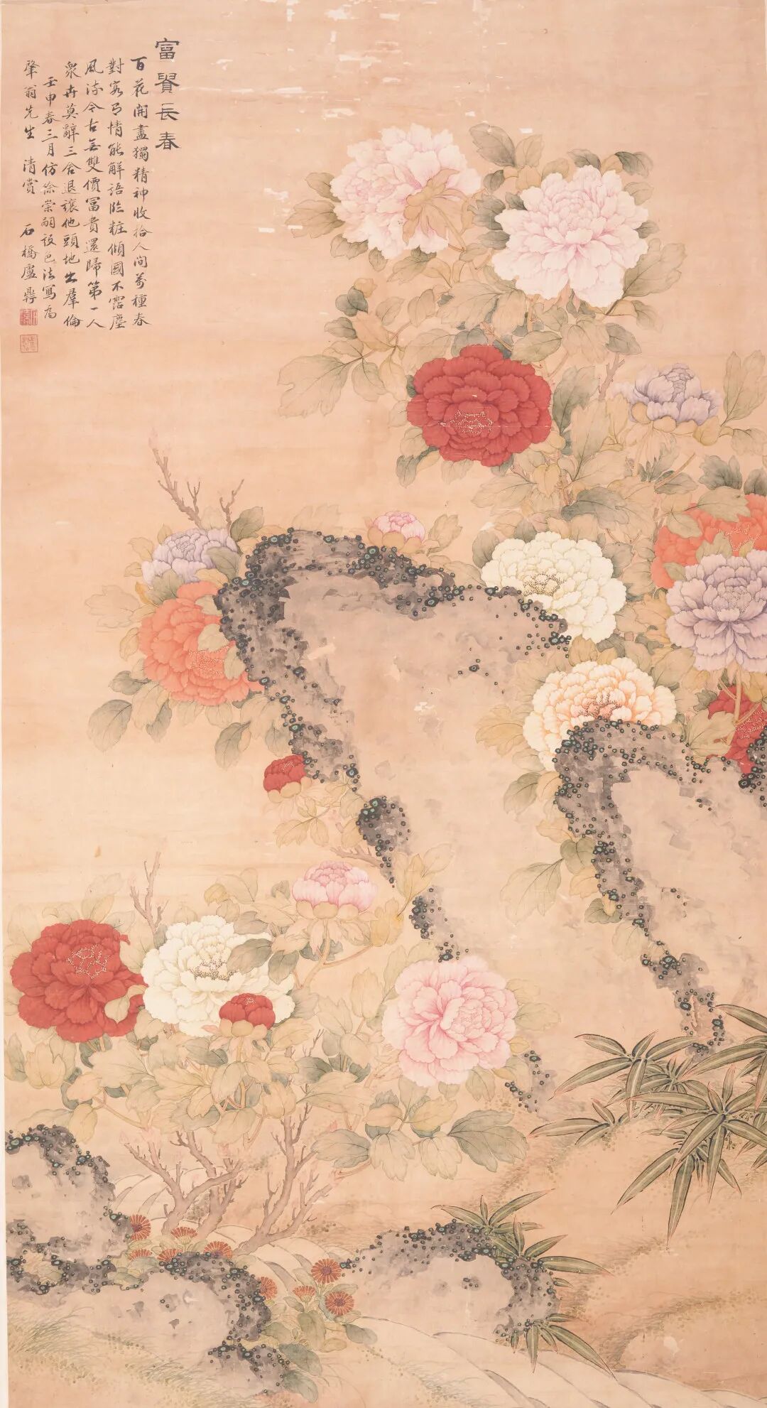 牡丹与其他事物组合,寓意丰富多彩。牡丹与白头翁组合,寓意“富贵白头”,用于祝福老年人富贵长寿;与绶带鸟组合,寓意“富贵长寿”;与凤凰组合的图案被称为“凤戏牡丹”或“凤穿牡丹”,寓意“富贵吉祥”,可用于婚嫁,象征美满幸福;牡丹与孔雀结合寓意“富贵吉祥”;与公鸡组合在一起寓意“功名富贵”;与海棠花组合,寓意“满堂富贵”;与水仙花组合,寓意“神仙富贵”;牡丹插在瓷瓶内寓意“富贵平安”。