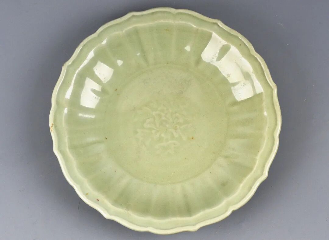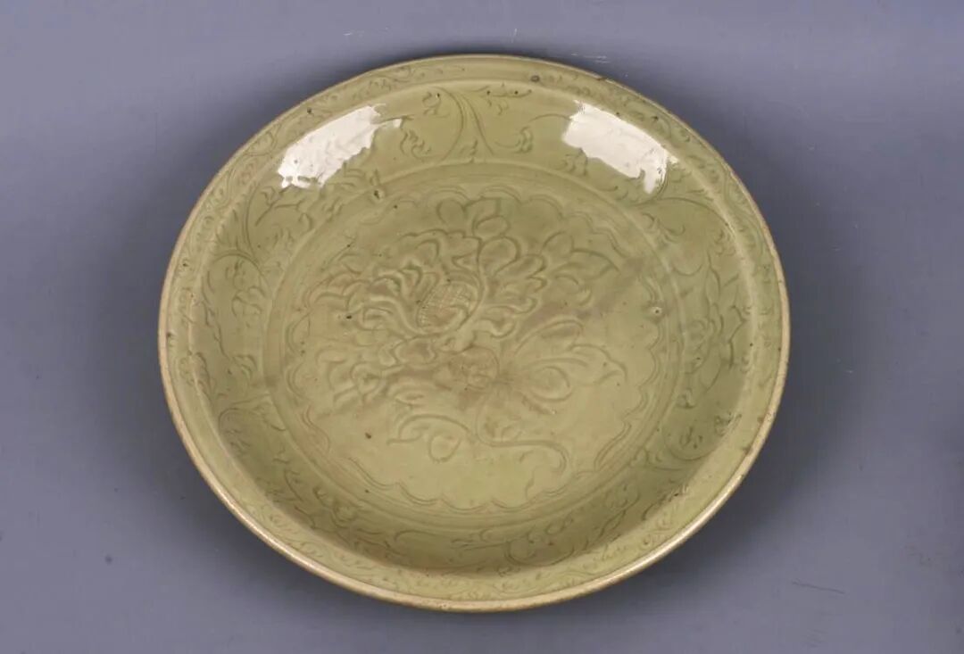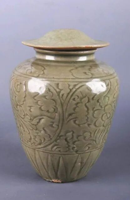 明龙泉窑青釉划花缠枝牡丹纹罐