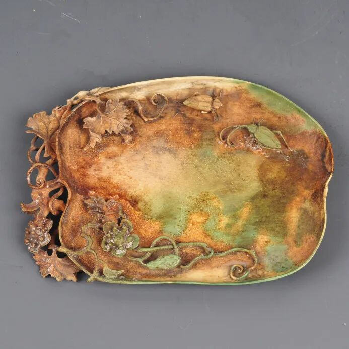 清牙雕染色北瓜形盘