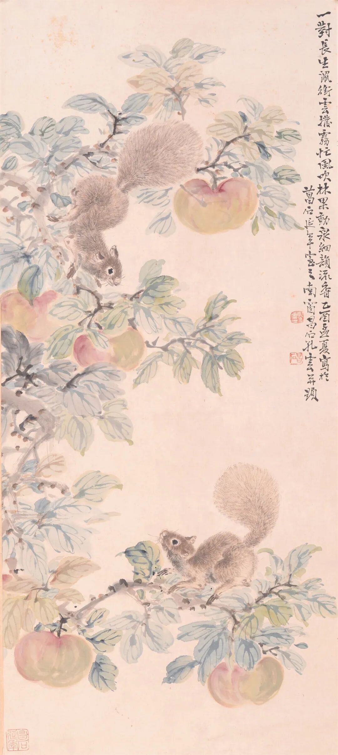 现代 孔昌石 松鼠苹果图轴