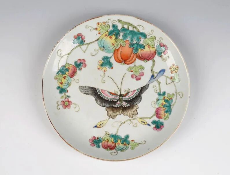 清同治五彩瓜蝶纹盘