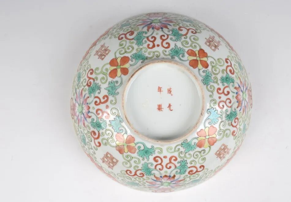 彩满花喜字碗