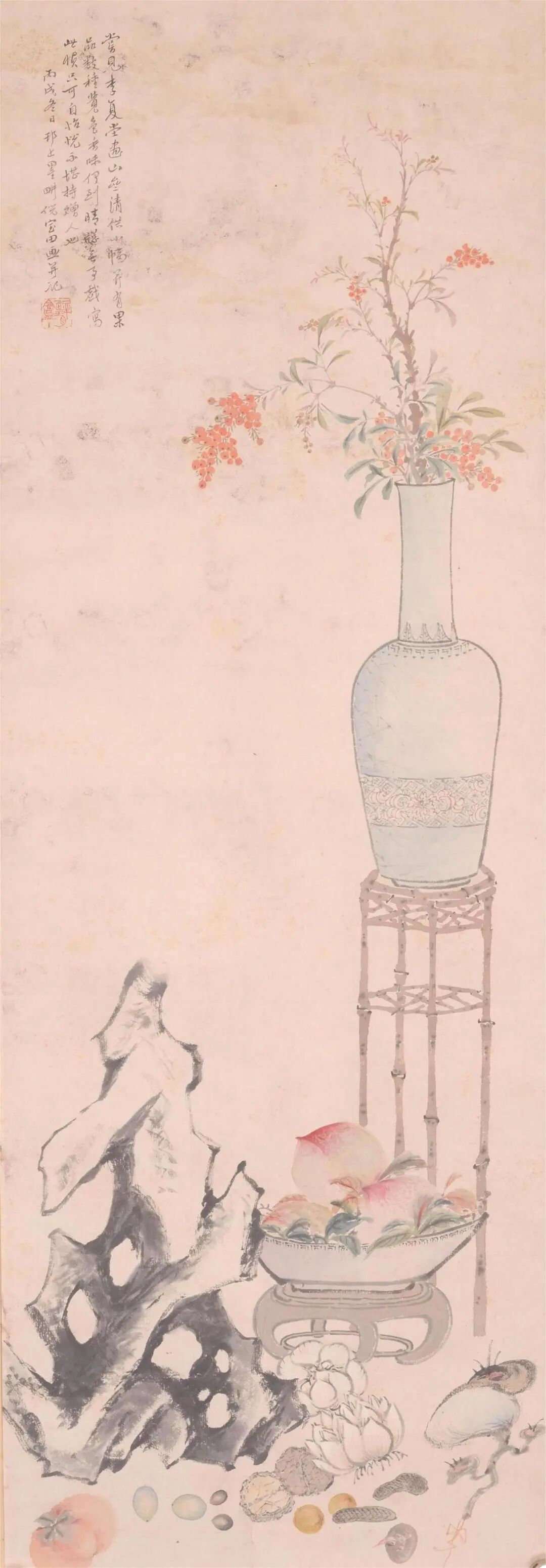 清 倪墨耕 寿桃天竹图