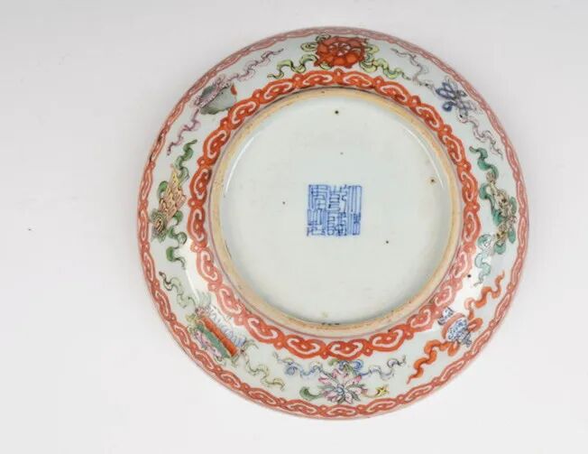 清乾隆粉彩福寿八宝纹盘