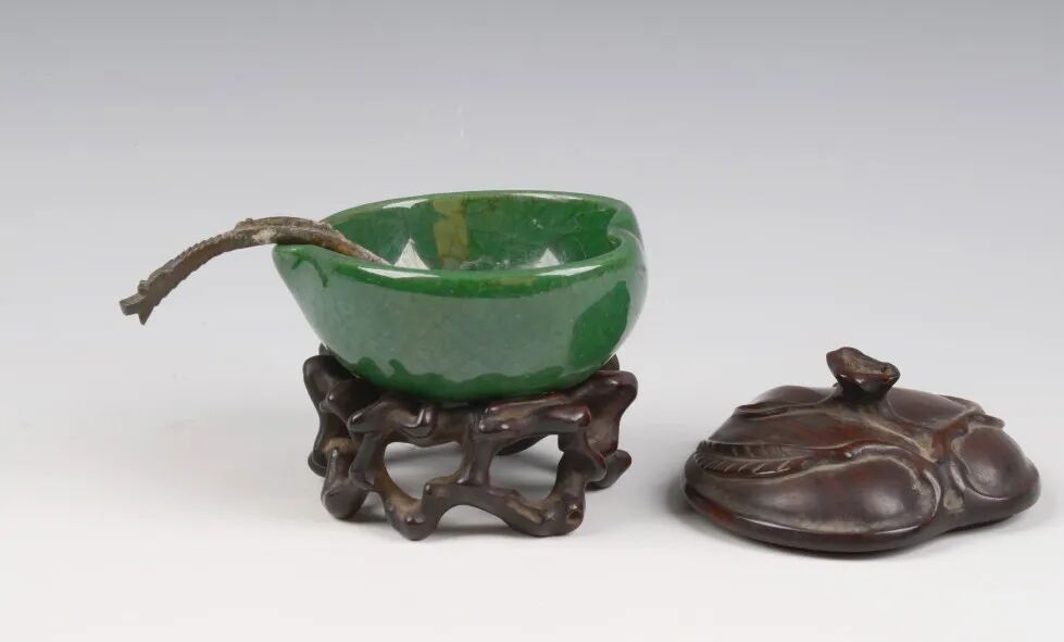 清道光绿釉桃形水盂