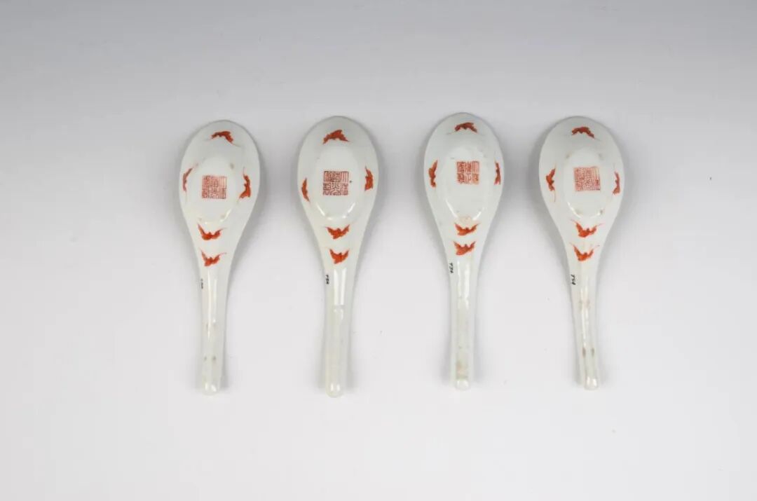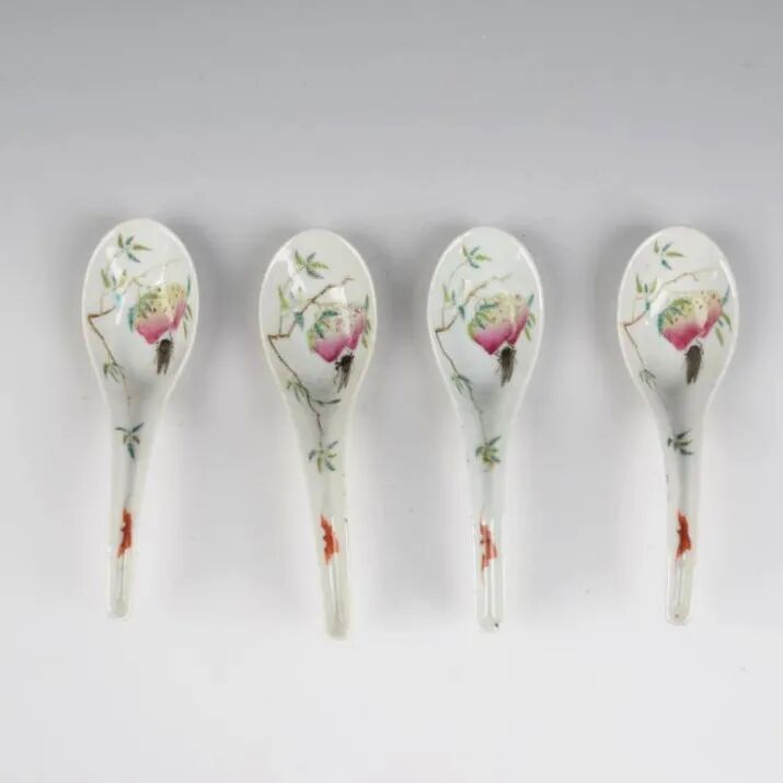 清道光粉彩双桃草虫匙