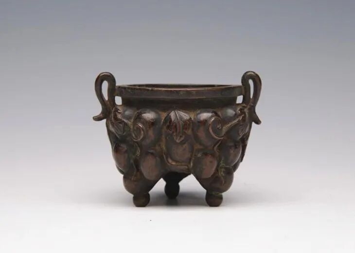 清葡萄纹三足铜香炉