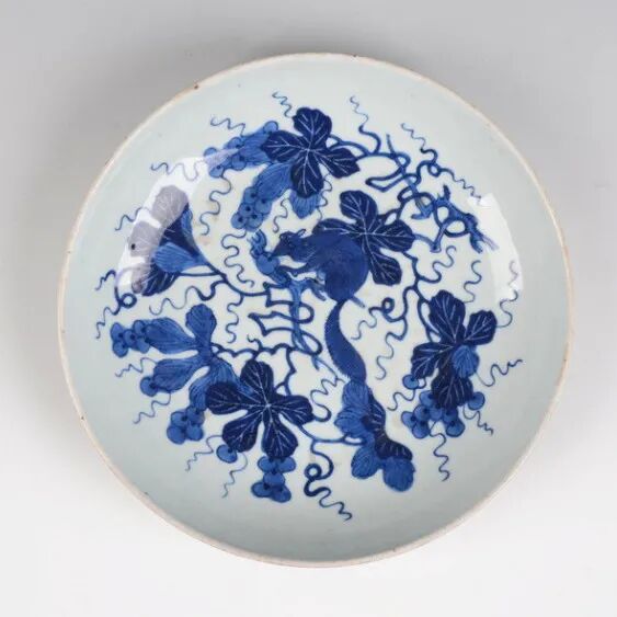 清青花松鼠葡萄纹盘