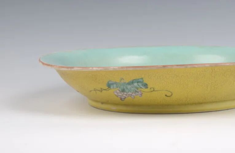 清黄地粉彩花果纹盘