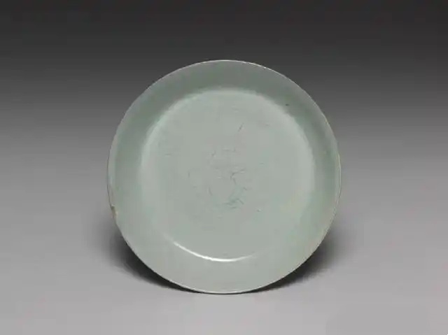 【 北宋 《汝窑青瓷碟》 】洗侈圆口,周壁稍深,平底,圈足微外捲。胎体薄而满施天青色釉,釉薄处隐现浅粉色光泽。内周壁积釉处,可看到冰裂纹。