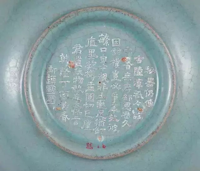 诗文如下:“淡青冰裂细纹披,秘器犹存修内遗。古丙科为今甲第,人材叹亦或如斯。”
