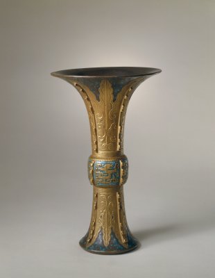 (故宫博物院藏古铜彩蕉叶纹出戟花觚)