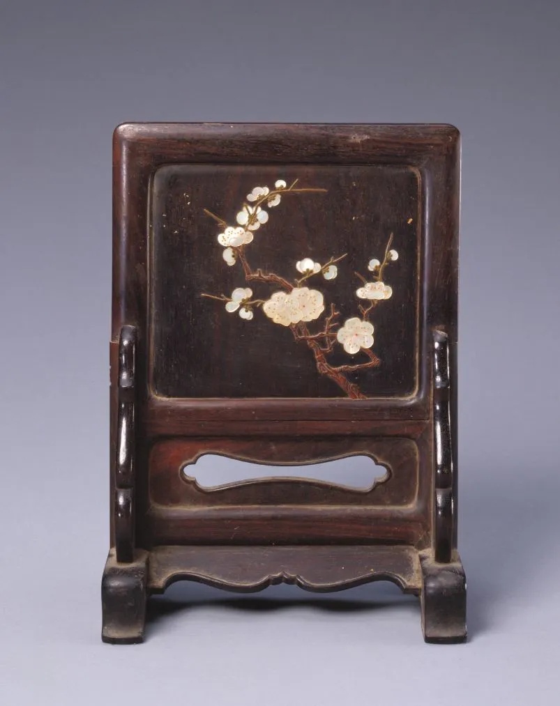 螺钿漆器可以追溯到商代,至清代,螺钿家具的制作达到了高峰。螺钿多以黑漆做底,螺贝的薄片嵌在上面形成视觉效果的反差,而螺贝本身能在光线下产生出奇幻、绚丽的艺术效果,应用于屏风时体现出极强的装饰性。
