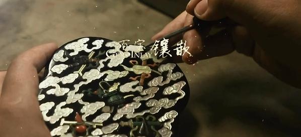 《我在故宫修文物》中,一件名为“黄花梨木百宝嵌番人进宝图顶箱立柜”的藏品即展现了这一宫廷绝技,打造的人物及风景图案栩栩如生。在不同的光线及角度下,华物呈现出各色虹光,工匠的极致匠心与至高审美,惊艳世人。