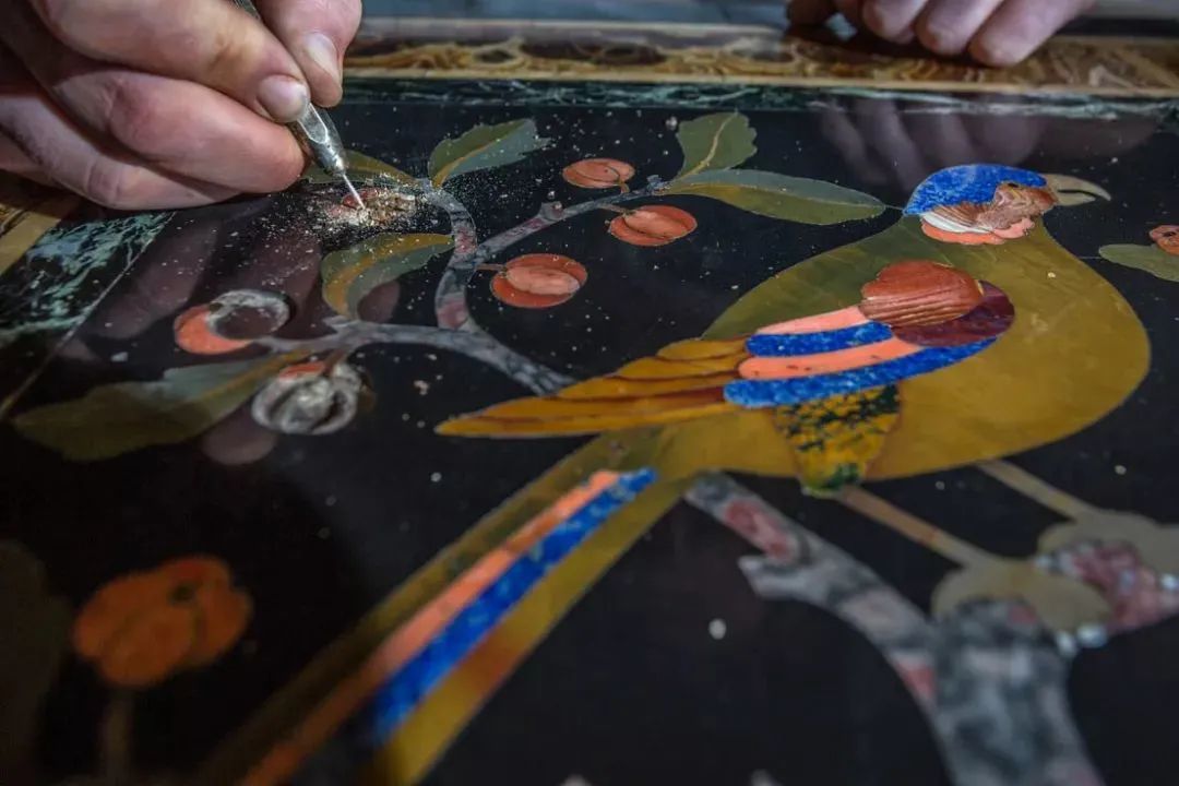 欧洲的彩石镶嵌以平面呈现,但与中国的百宝嵌有着异曲同工之妙