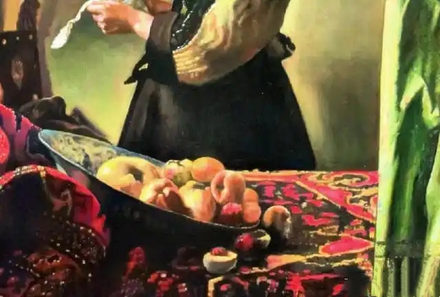 维米尔虽以刻画人物见长,但《在敞开的窗边看信的少女》一画中,前景台布之上就摆放着一只青花瓷大汤盘,这是一种为欧洲专门定制的外销瓷。