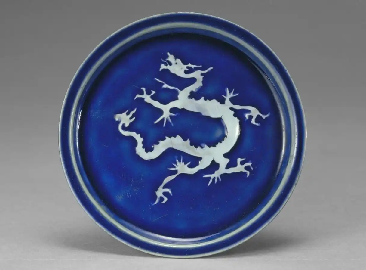 元代景德镇窑蓝釉白龙纹盘,故宫博物院藏