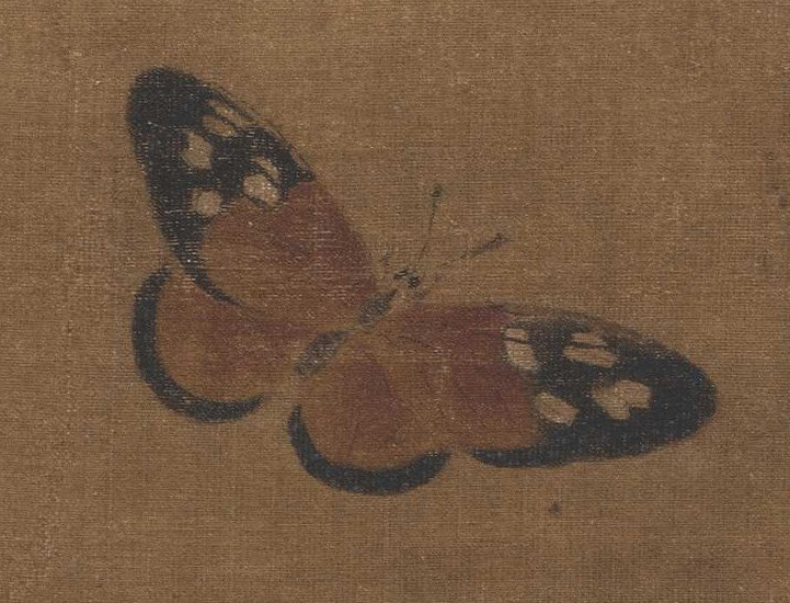 《芙蓉锦鸡图》这幅画的气韵与构局,因为有画有诗,还有题款钤印,因此空间处理大非易事。徽宗却举重若轻,在左边居中处出枝,写芙蓉花,一枝向上斜出,一枝向右横曳,而一只五色锦鸡正好停于侧目而视枝上,更压弯了枝梢,何其自然,何其轻盈优美。锦鸡飞临,背侧的姿态,头转向右上方,而尾羽斜贯,气接右下方,正好镇住两个大角,而与芙蓉花枝气运相和。右上两只戏蝶,上下流连,正好是锦鸡注目之方位。却又从左下角斜出白菊,两枝花头一斜一平,正好与芙蓉花枝的姿势相重(如诗律中的押韵)!宋徽宗是北宋的“画王”,其美学思想极为丰富而深刻,他的画尤其注重气韵和意境,其空间美和时间性,气局的充实与流走融和统一,成了美妙的抒情。《芙蓉锦鸡图》其尺幅就很美,绢本(81.5×53.6厘米),恰好符合“黄金律”,当然那时并无“黄金分割”的概念,而完全体现为画家本人一种对美的感觉。