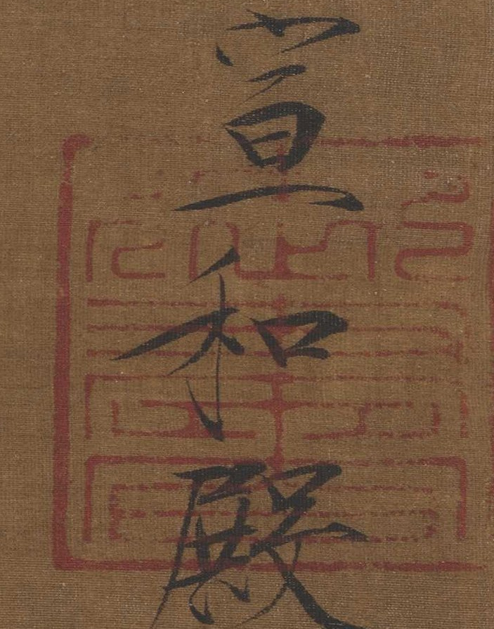 再综观《芙蓉锦鸡图》全幅,可见其构局之美、之严谨。任何一部分甚至一枝一叶,一笔都不顺移易,稍微动一下,就会破坏全局的美,打破了平衡。全幅的气局成了有机的统一,有封有逸,有总的流势,向上向右上角引领生发。如上面的飞蝶高于左边最高的花头,则气就会压抑,现在相反,是芙蓉花头高过飞蝶,因此气势更斜贯带入右上角。其精微博大处如此。同样钤印“御书”朱文方印,是在“宣和殿”三字之上,这种徽宗画的体式,也一点不占画面,不减损那种恒美,相反却为之生色。如此来看,徽宗画的艺术风水也可领略品味了。至于借物喻意,抒写情怀,芙蓉秋菊的傲霜,锦鸡的“全五德”,又在画中画外寻了。