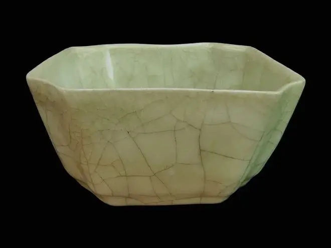 艺术价值:从艺术角度来看,此碗造型简约而不失大气,八方形的设计独具匠心,既体现了宋代瓷器追求自然、质朴的美学理念,又展现出独特的形式美感。青釉的温润色泽与开片纹理完美融合,营造出一种古朴、雅致的艺术氛围,给人以独特的视觉享受,具有极高的艺术感染力和审美价值。