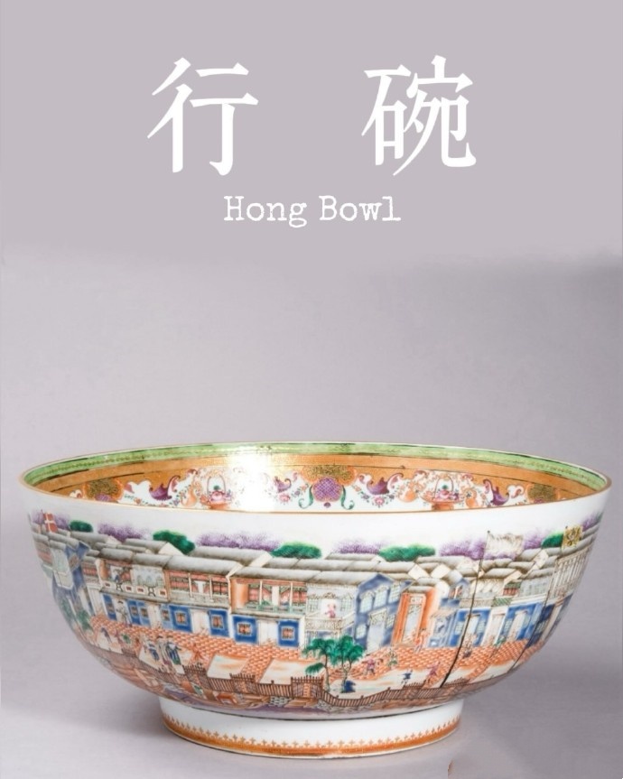 潘趣碗是中国外销瓷的一个主要品类,以其深壁大口的设计而闻名。这种独特的形状不仅便于饮用,还能充分展示精美的绘画图案,适合描绘複杂的场景和生动的故事。例如,专门描绘广州十三行情景的「行碗」,碗身展现了十三行的全景。丹麦、法国、中国(清)、瑞士、英国和荷兰的商行尽收眼底。十三行口岸的船隻汇聚,码头上熙熙攘攘的人群,生动反映了清代各国商人在十三行交易的繁荣景象。