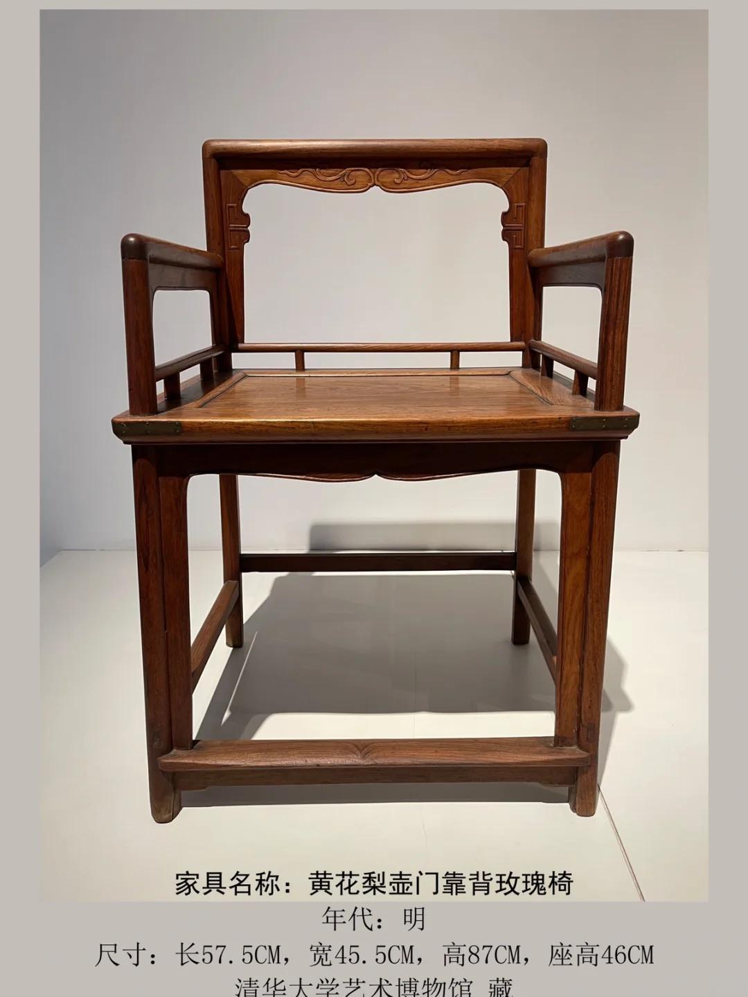 清华大学艺术博物馆里珍藏的一件黄花梨“明式家具”——玫瑰椅。