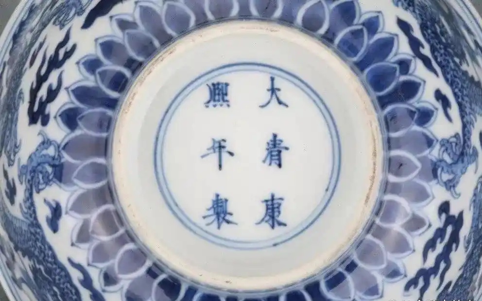 清康熙款青花云龙福寿碗