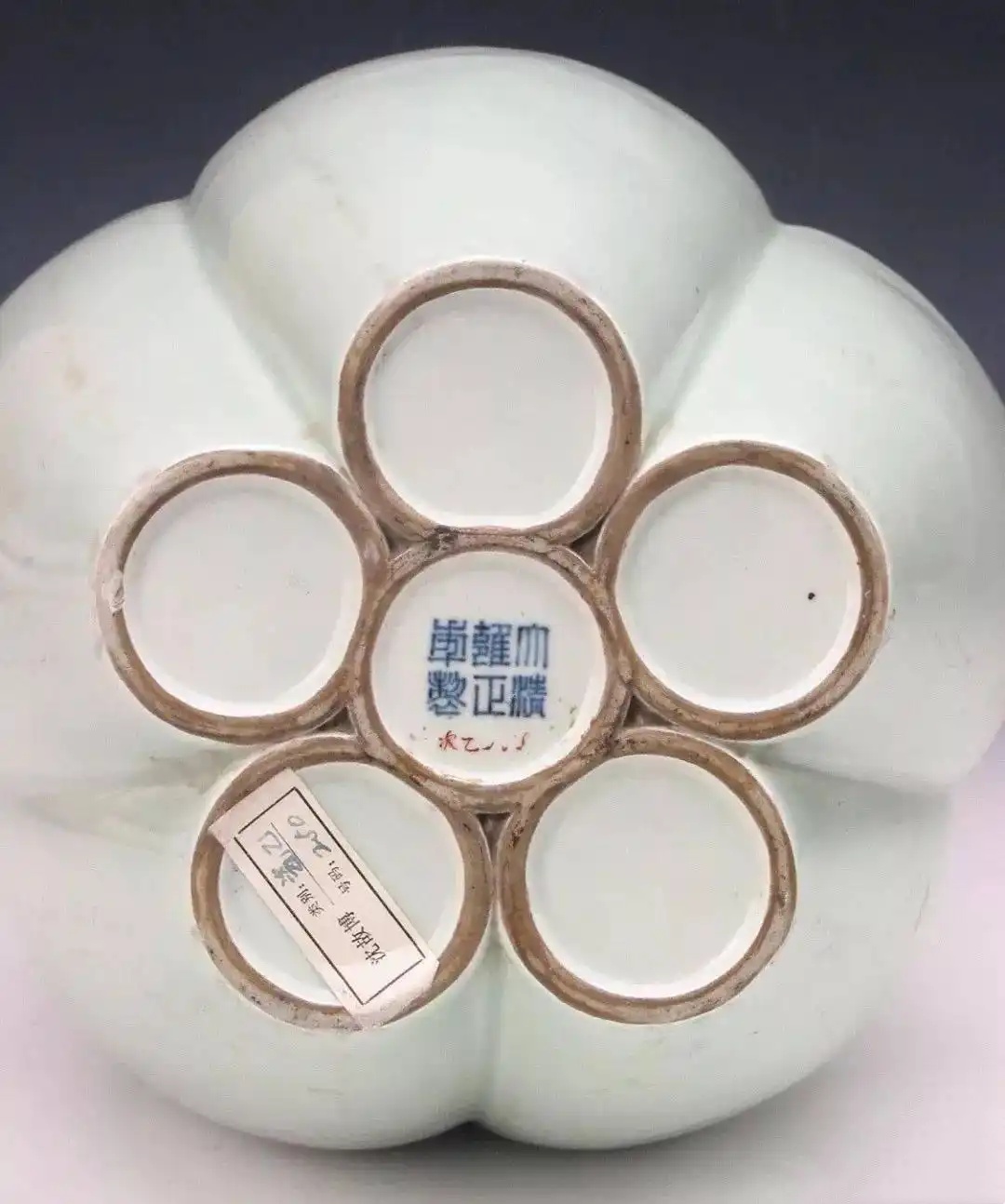 清雍正款冬青釉六孔瓶