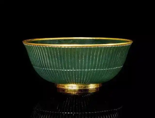 清乾隆 碧玉雕痕都斯坦式嵌宝石花式盏