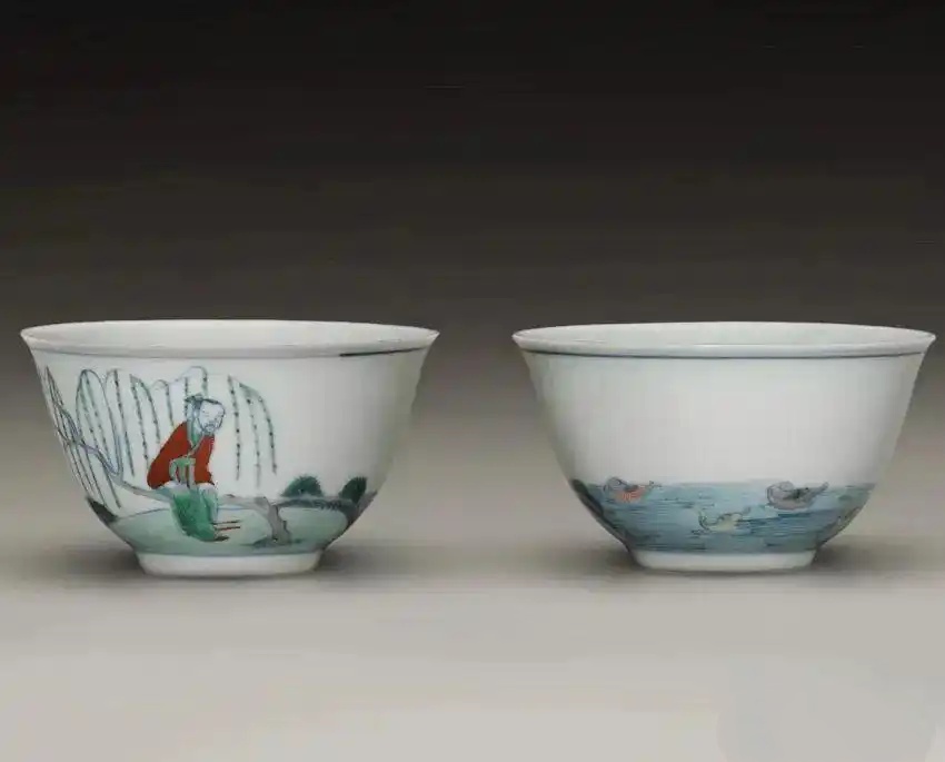 清雍正 雍正仿成化斗彩高士杯(正反面)