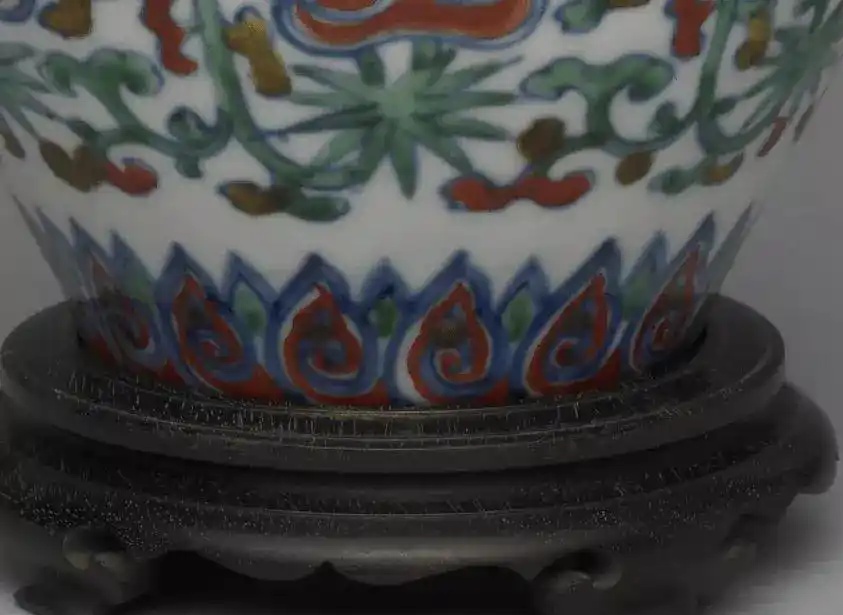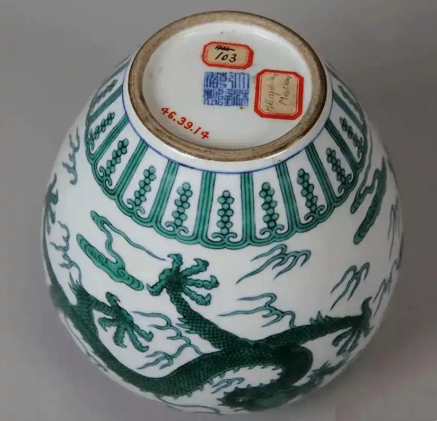 清乾隆 斗彩绿彩云龙纹罐(底部)