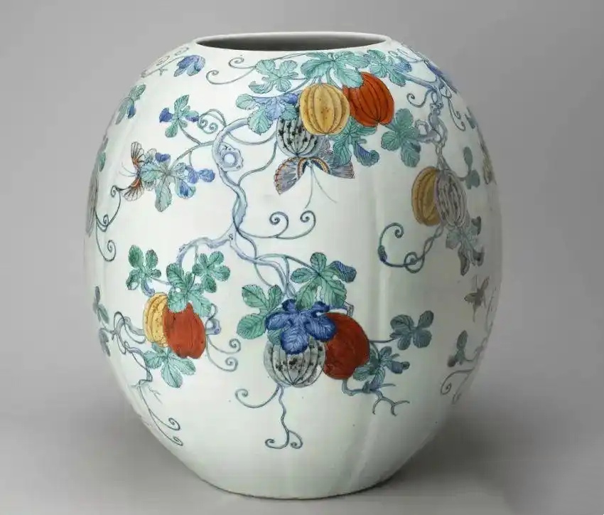 清雍正 斗彩瓜瓞绵绵瓜楞罐